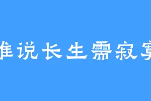 谁说长生需寂寞